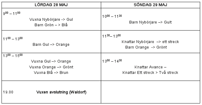 Graderingschema – VT 10 (UPPDATERAT) 2011-05-162011-05-17 johan Kom ihåg att vara där i god tid och att ni har med er vatten och jutsupass/monpass (knattar behöver inte ta med sig något sådant). Bälten kostar 60 kronor och för de vuxna kostar graderingen 100 kronor (gratis för alla barn och knattar)
