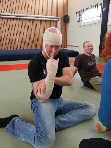 D-kurs i Luleå Budocenter 2013-04-132013-04-17 Sara Nu har vi kommit igång med D-kurs med deltagare från LJJK och Piteå Budoklubb Nu är det dags för att lära sig hur man lindar stukningar. Planering av träningspass