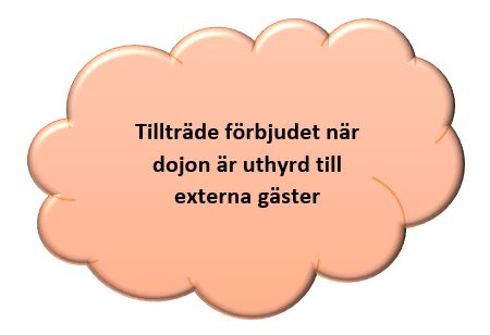 Dojon bokad 2019-06-10 Sara Fredag 26 juli – söndag 28 juli är dojon bokad för aktiviteter, endast behöriga har tillträde.
