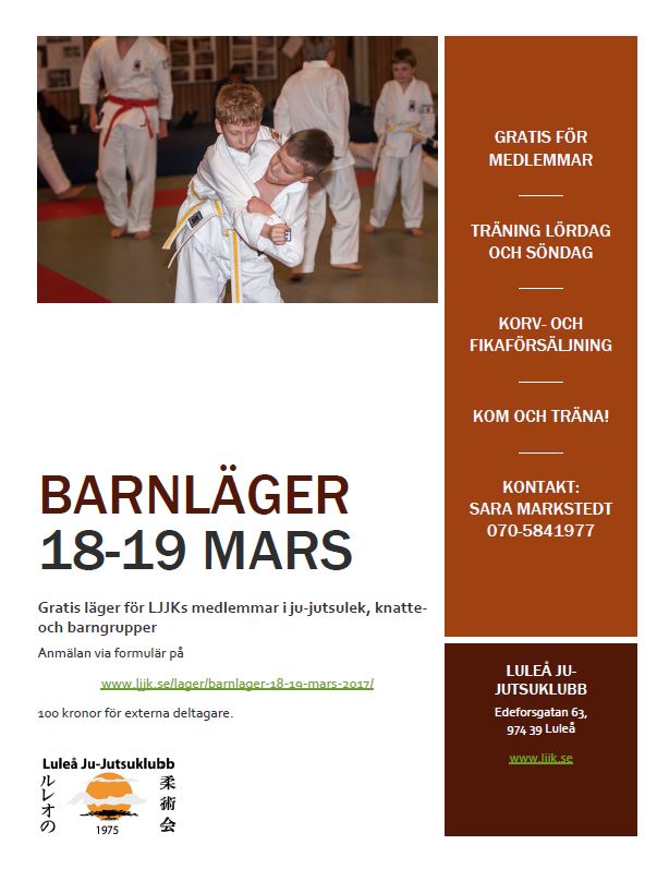 Läger 18-19 mars med klubbens egna instruktörer för medlemmar i ju-jutsulek, knatte- och barngrupper.
