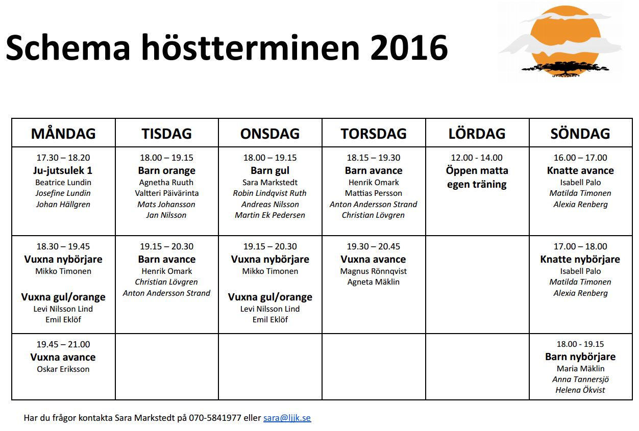 Schema höstterminen 2016 2016-05-102016-09-15 Sara Schema för höstterminen finns på www.ljjk.se/schema