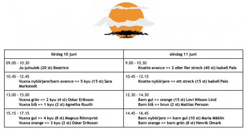 Schema för gradering 10-11 juni