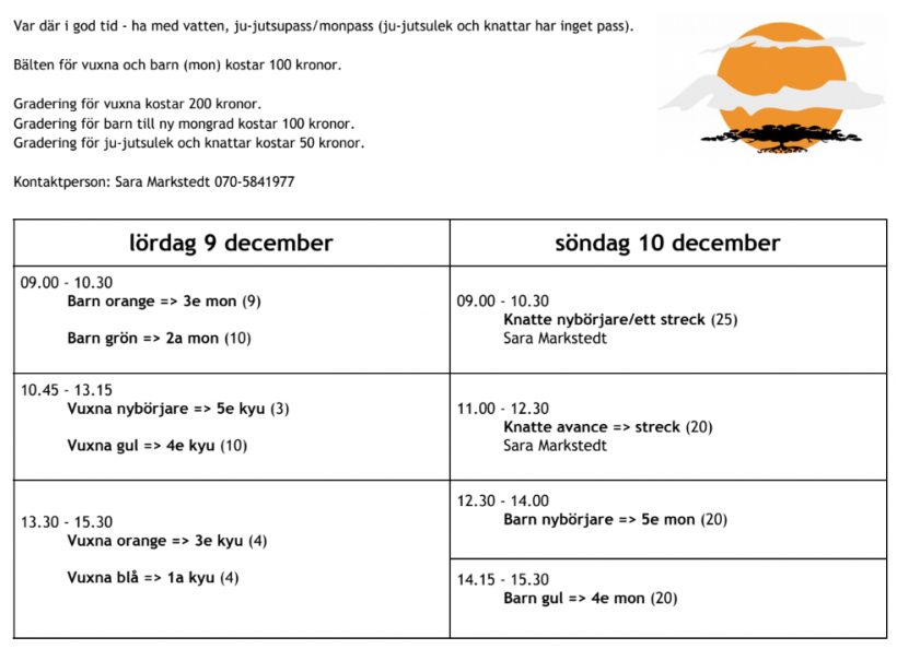 Schema graderingshelg 9-10 december