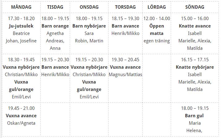 19.15 – 20.30 Vuxna nybörjare Christian/Mikko Vuxna gul/orange Emil/Levi |