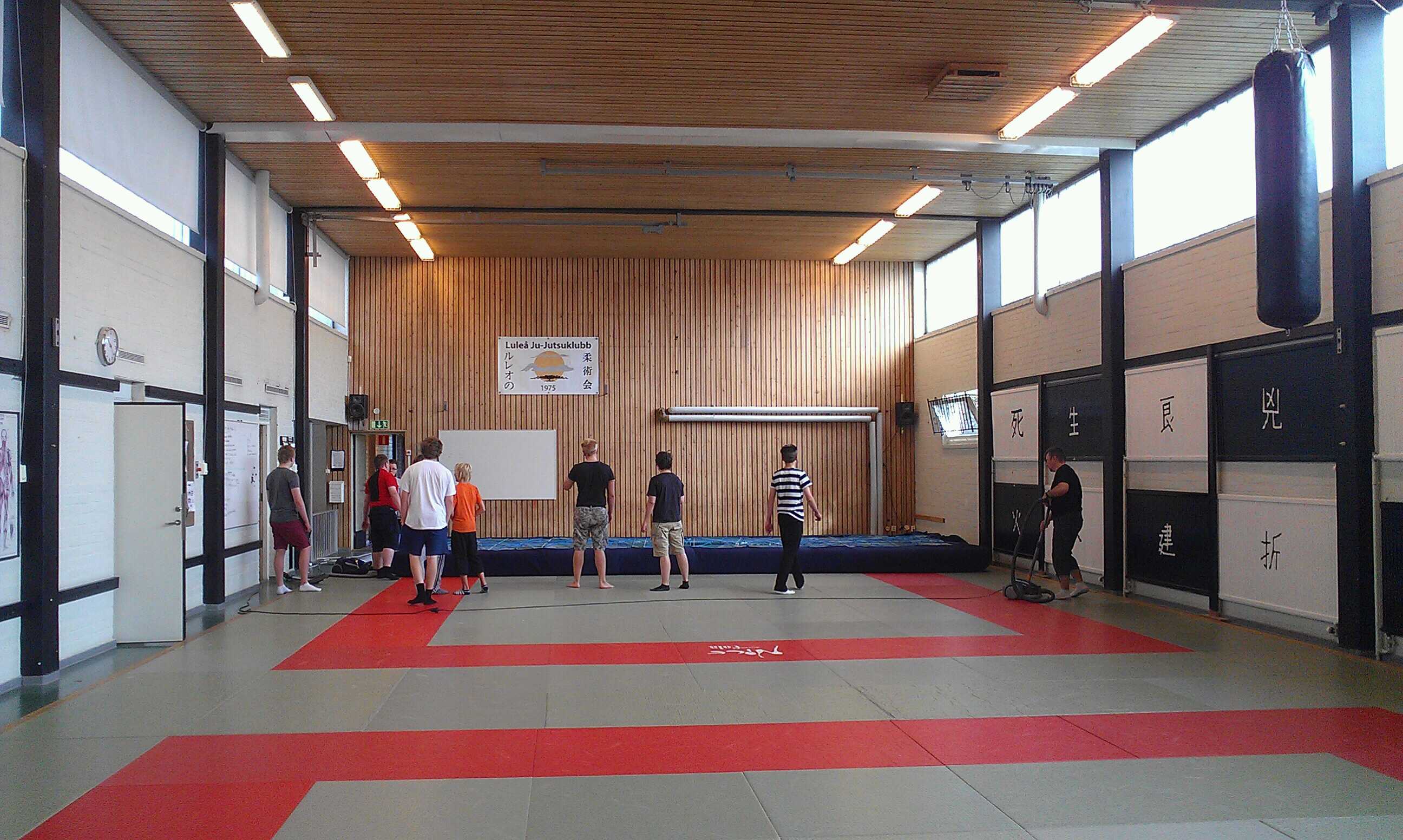 Städningen är igång för fulla muggar 2012-08-182012-08-18 Sara Två som dammsugar och resten ser på Det blir många mattor som ska lyftas och dammsugas under